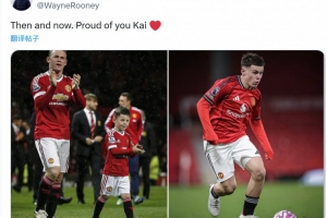 魯尼社媒曬出兩張照片,分別是帶著兒時的凱·魯尼在老特拉福德謝場,以及凱·魯尼老特拉福德首秀的照片,配文:“過去和現在,始終為你感到驕傲,凱。”