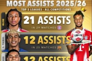 2、亞馬爾(巴薩)25場12助、拉什福德(巴薩)30場12助
