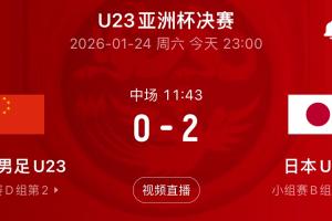 體育資訊01月24日訊 U23亞洲杯決賽,U23國足半場0-2暫時落后日本隊。與此同時開球的英超比賽,曼城半場2-0領先狼隊。