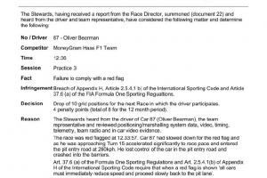 體育資訊7月5日訊 F1官方宣布,貝爾曼因在紅旗下超速,正賽被罰退后10位發車,同時超級駕照扣4分。