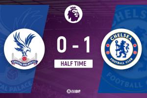 上半場傷停補時2分鐘,半場結束,切爾西暫1-0水晶宮。