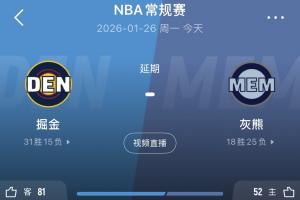 Shams在社媒表示:由于天氣原因,今天在孟菲斯舉行的掘金隊與灰熊隊的比賽已被推遲。
