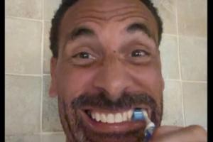 費迪南德曬出自己正在刷牙的照片,配文:晚安,所有人。圖片中的他看起來非常的高興。