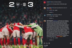 體育資訊01月26日訊 本輪英超,阿森納2-3遭曼聯絕殺,聯賽近3輪2平1負。賽后,阿森納社媒發布戰報,配文稱:周三晚上我們將迎來一個迅速翻開新的一頁的機會。