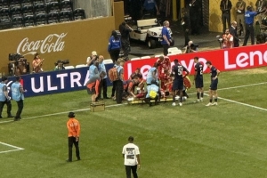 體育資訊7月6日訊 世俱杯1/4決賽,巴黎圣日耳曼vs拜仁半場結束前,穆西亞拉與多納魯馬撞在一起,腳踝嚴重變形,隨后被擔架抬走,而穆西亞拉才剛傷愈數天。