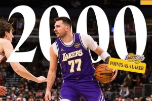 首節過后,東契奇砍下14分,其湖人生涯總得分突破2000+!湖人官方也曬出海報祝賀。