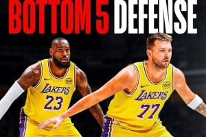 美媒ClutchPoints曬出湖人本賽季防守數據,本賽季湖人的防守效率117(百回合失分),排名NBA第25位,但他們總戰績28勝17負。