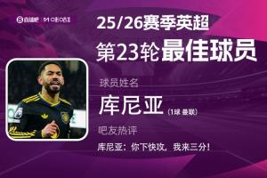2025-2026賽季英超火熱進行中,體育資訊和咪咕體育聯合發起每輪英超最佳球員評選活動!第23輪評選結果已經出爐,曼聯前鋒庫尼亞當選!