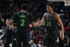本場比賽,鵜鶘兩位鋒線墨菲和瓊斯進攻端都毫無狀態(tài),尤其是外線各種機會就是投不進。墨菲20中3,三分11中1,罰球5中3拿到10分5籃板5助攻3搶斷1蓋帽;瓊斯則是12中3,三分9中1,罰球2中2拿到9分5籃板5助攻2搶斷2蓋帽。