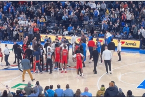 不過,在沖突期間,亞歷山大和小喬丹手牽手離開戰圈聊天去了。