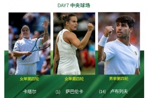 體育資訊7月6日訊 溫網今天將進入到第七個比賽日的爭奪,男、女單打將展開1/8決賽的爭奪。