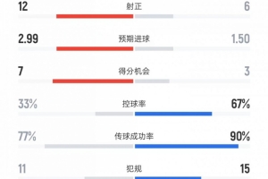 傳球成功率——77%比90%