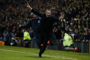 場邊的穆里尼奧飛奔慶祝!一如22年前的歐冠邊線的狂奔,而如今穆帥早已白了頭。