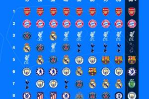 轉播商亞馬遜通過一張圖片清晰明了地展示了本輪晉級形勢隨比賽時間的變化,直通的8個席位除前兩名阿森納和拜仁外,其余名次都隨著比分變動經歷了頻繁的更迭。