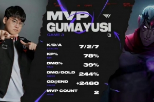 Gumayusi拿下MVP二連,屬于BP不限制,游戲里也管不了他。