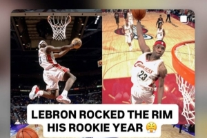在本場比賽開始之前,詹姆斯轉發了幾張自己在新秀賽季扣籃的瞬間。