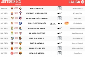 體育資訊1月29日訊 西甲官方公布了第24輪比賽的開球時間,2月15日4點(diǎn)皇馬vs皇家社會,2月17日4點(diǎn)赫羅納vs巴薩。