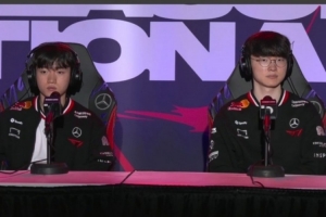 體育資訊7月6日訊 2025MSI,T1橫掃BLG晉級勝決,賽后T1中輔兩位選手參加媒體發布會。