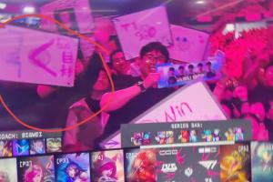 體育資訊7月6日訊 今日MSI淘汰賽上第三局比賽中,導播鏡頭給到觀眾席時有現場觀眾手舉“科目四>LPL”的應援牌!