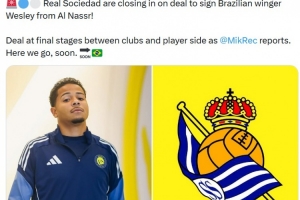 據(jù)報(bào)道,皇家社會(huì)與利雅得勝利以及球員方面已進(jìn)入談判的最后階段,這筆交易即將完成 ,很快可以Here we go!