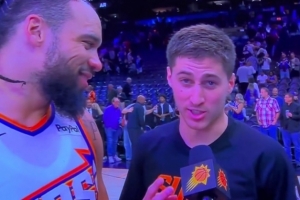 賽后采訪,吉萊斯皮打斷了狄龍的場邊采訪,同時道:“現在告訴所有人,我們隊里有兩個全明星。這個家伙是全明星——把你們手機都掏出來,開始投吧。”