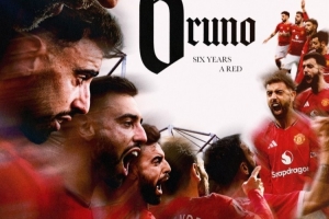 2020年1月30日,B費(fèi)以6500萬歐轉(zhuǎn)會(huì)費(fèi)從葡萄牙體育加盟曼聯(lián),曼聯(lián)官方社媒曬出B費(fèi)加盟6周年海報(bào),配文:“球場上的護(hù)身符,球場下的紳士。”