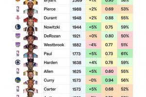 注:關鍵時刻數據從1996-97賽季開始統計