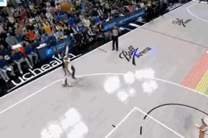 GIF-小哈達威落地踩到喬丹·米勒的腳,裁判看回放后吹三分犯規