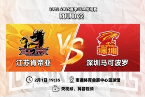 2月1日19:35,2025-26賽季CBA常規(guī)賽第二十二輪,江蘇肯帝亞將迎來第一階段最后一場主場比賽,迎戰(zhàn)深圳馬可波羅。