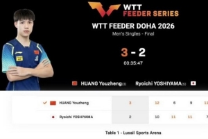 體育資訊2月1日訊 WTT支線賽多哈站男單決賽,???黃友政3-2戰勝吉山僚一,奪得冠軍!