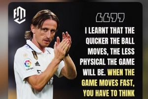 莫德里奇接受采訪時說道:“我意識到,球移動得越快,比賽的身體對抗就越少。當比賽節奏快時,你必須快速思考,而當比賽節奏慢下來時,就會給身體素質好的球員創造機會。”