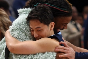賽后,前隊友莫蘭特轉發了河村勇輝在公牛的第一分,并寫道:“??。”