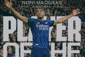 體育資訊2月1日訊 阿森納客場4-0擊敗利茲聯(lián),俱樂部官方消息馬杜埃凱當(dāng)選本場比賽最佳球員。