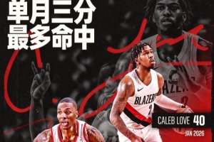 開拓者官微寫道:“來看看樂福在一月的(40記)三分表現?? 他在一月單月三分命中數排名開拓者隊史新秀第二位,僅次于達米安·利拉德(42記)”