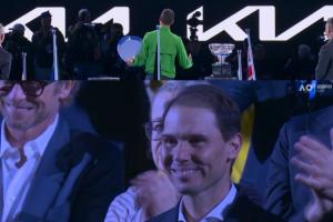 體育資訊02月01日訊 2026年澳網男單決賽結束,阿爾卡拉斯3-1戰勝德約科維奇奪冠。德約在賽后致辭時,打趣了今天前來觀賽的納達爾。