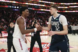 “弗拉格的成長太驚人了,尤其是關鍵時刻的心理素質,堪稱頂級。他一定會成為一名超級巨星,長期為獨行俠效力,獨行俠球迷能擁有他真的太幸運了。看著他一場比一場進步,真的太棒了,他注定會成為獨一無二的球星。”阿門說道。