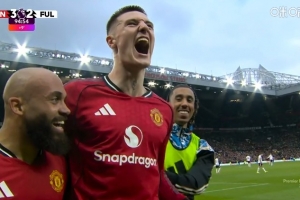 曼聯主場3-2絕殺富勒姆,比賽第94分鐘,替補上場的舍什科送出絕殺。