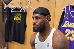 NBA官方Instagram曬出對詹姆斯賽前的更衣室采訪。