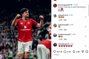 馬奎爾社媒曬出慶祝的照片,并寫道:“世上沒有比身為紅魔更棒的事情了!”