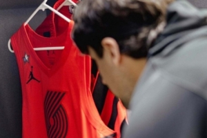 今天的比賽,阿夫迪亞也將穿上帶有全明星特別補丁的球衣比賽。賽前,阿夫迪亞也仔細看著這件特別的球衣。