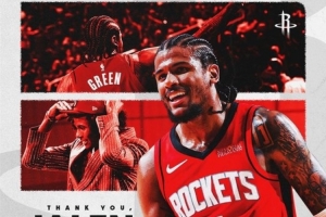 體育資訊7月7日訊 今天,火箭官方曬圖致謝杰倫-格林、狄龍-布魯克斯和惠特摩爾。