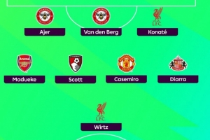 后衛:阿耶爾(布倫特福德)、范登貝爾赫(布倫特福德)、科納特(利物浦)