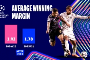聯賽階段還帶來了更小的勝利差距,平均勝利差距為1.78個進球,低于上賽季的1.92個進球。比賽更加接近、更具競爭力和戲劇性。