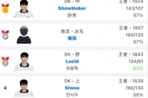 體育資訊2月4日訊 DK人均排位亂殺??ShowMaker登頂,打野Lucid第三、上單Siwoo第四。