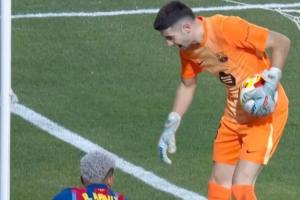 上半場,阿勞霍和霍安·加西亞合力防下了對手的一次進攻,霍安·加西亞將球沒收后,似乎沒意識到此刻并不是死球狀態,他拿著球走出底線,拍了拍阿勞霍的頭來慶祝。這送給對手一個角球。