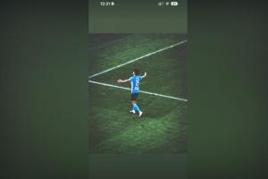 松弛感滿滿!聯賽杯奪冠后,謝爾基側躺在球場內玩手機