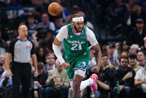上半場比拼,加福德鎮守籃下效果很好。他出戰17分鐘,3投3中,罰球6中4,得10分4板2助1斷3蓋帽。正負值為+6。