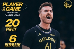 賽后勇士官方發布本場最佳球員數據海報,斯潘塞當選。