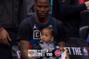 GIF-賈旺特·格林替補席抱上娃了