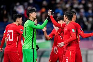 國足替補:12-薛慶浩、26-于金永、2-劉浩帆、7-徐皓陽、8-徐新、10-韋世豪、11-塞爾吉尼奧、13-魏震、16-巴頓、18-廖錦濤、19-曹永競、20-王子銘、21-陶強龍、22-劉誠宇、24-汪士欽